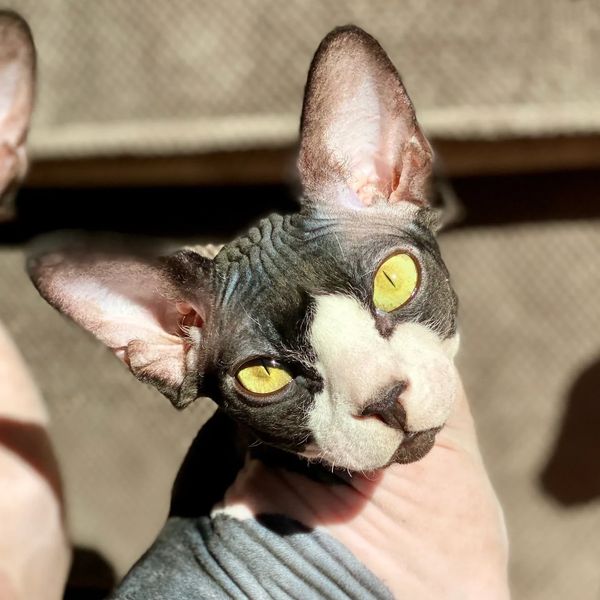 Mr Perfect. Will play with the kittens and snuggle with the humans. He likes to hang out on humans’ necks, talk, and give lots of kisses. He can entertain himself for an hour with a hair tie. If something bad has happened, Hugo is probably NOT involved.